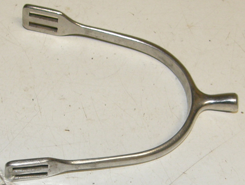 This spur is constructed of stainless steel with 3/4'' neck with blunt end & squared spur strap slots. 3 1/4" wide opening, approx 3 3/4" deep, & 5/16" band. Not marked so brand unknown & is in excellent condition. Single spur only. Use as a replacement for a lost or broken spur, use for crafts or decorations.