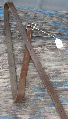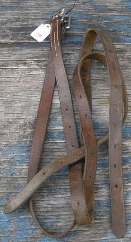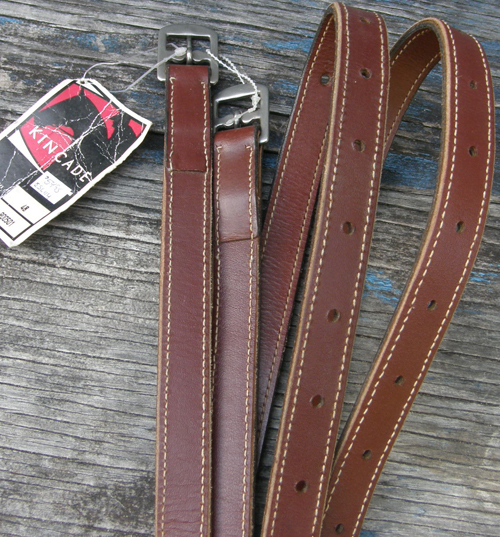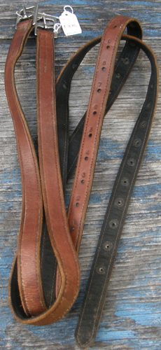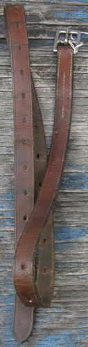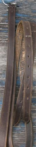 English stirrup leathers with smooth edges & 12 numbered holes plus a few more punched. 1" wide x 50" long. Brand unknown. Sturdy yet supple.