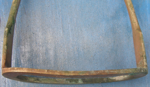 Chrome plated English stirrups with 4 1/2” tread & comes with black pads. Has lots of corrosion on sides/bottom. Brand unknown.