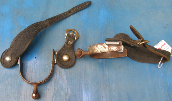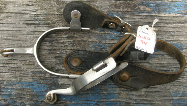 Spur features 3" boot opening. Comes with a pair of used leather spur straps that are soft quality leather although dirty & stained from use.