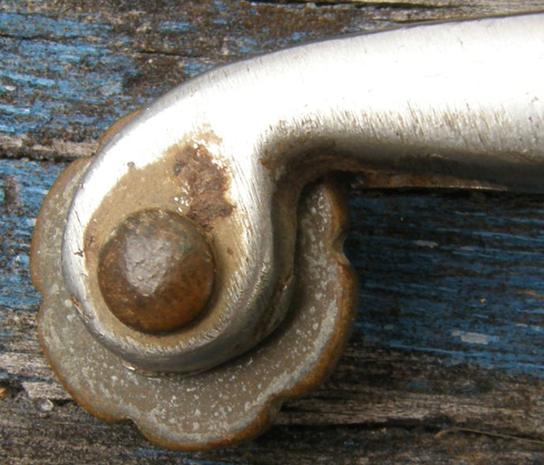 Slip on style Western spurs with 1” neck that drops down 1" for an extreme swan neck & has 6 point rowels. 2 1/4" opening & 3 1/4" deep. Need to be used on a boot with a heel. Brand unknown. A few spots of rust & rowels spin freely. Single spur only. Use to replace lost spur, for decorating, etc.