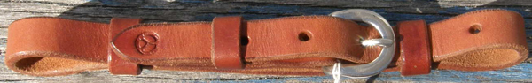 5/8" wide bridle leather curb strap with darkened edges, buckles on both ends, 3 factory punched holes at each end but room to punch more, fancy etched "silver” buckles, keepers & tips. Use on horse that doesn't need a curb chain. Great for showing Western. Measures as set on 1st hole/smallest setting approx 10” long. Great for Extra Large Horses, Warmbloods or Drafts.