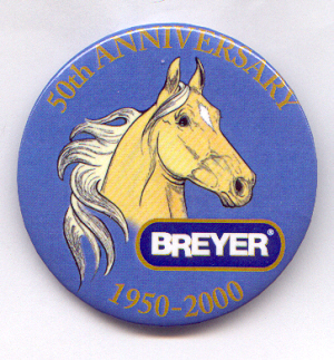 Button of Palomino Saddlebred horse model that went over a clock for Breyer’s 50th Anniversary #571 Mantlepiece Clock with Saddlebred Stallion. Pin back button was made by Breyer for a limited time during the same year the model/clock was available(2000). Made in 2000 only, this is sure to be a great collector piece!