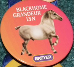 Button of Percheron draft horse #1206 Blackhome Grandeur Lyn, a real Percheron Stallion. Pin back button was made by Breyer for a limited time during 2003 only, this is sure to be a great collector piece!