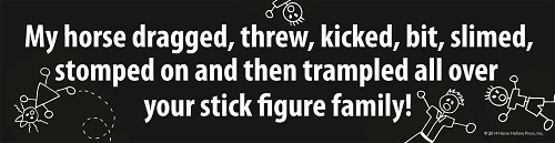 My Horse Dragged Threw Kicked Bit Slimed Stomped On And Then Trampled All Over Your Stick Figure Family Funny Horse Bumper Sticker Item Code: BS62 Price: $3.99