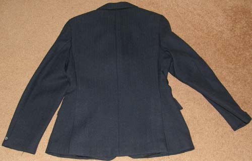 90% wool/10% polyester English style jacket with 100% acetate lining & was not made to be an English hunt coat but was used as such. With 3 button front, 2 front pockets, 3 buttons on each sleeve & darted/fitted front & back, makes a nice stylist lightweight English jacket. Size given is a 0, but flat measures approx 16 1/2” armpit to armpit across front, 22” from shoulder to bottom hem, & 17” sleeve inseam. Approx a Ladies 6/7?