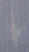 100% polyester English show jacket with 3 button front, 2 fake front pockets, 1 button on sleeves, lightly padded shoulders, darted & fitted, & double vented back. Flat measures approx 17" armpit to armpit across the front, 25" mid shoulder to bottom hem, 17 3/4" sleeve inseam. Dry clean. Small snag on bottom front right side(see inset).