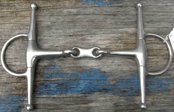 5 1/2” 3 pc jointed snaffle mouthpiece with 1 7/8" long center link & 6 1/2” high cheeks. Some horses prefer the French Link as its more comfortable than regular jointed snaffles as it puts pressure on the tongue instead of the palate or bars. Brand unknown.