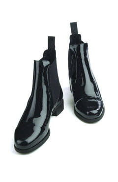These traditional patent leather jod boots really show off style. Equipped with elastic sides and rubber soles for stability. Stamped Amazonas Super Comfort on Heels. Pull on style Paddock Boots, elastic panels at ankles, nylon web pull tabs. Like new, very minor wear to soles/heels.