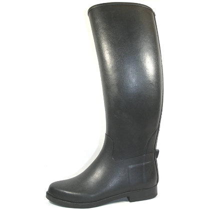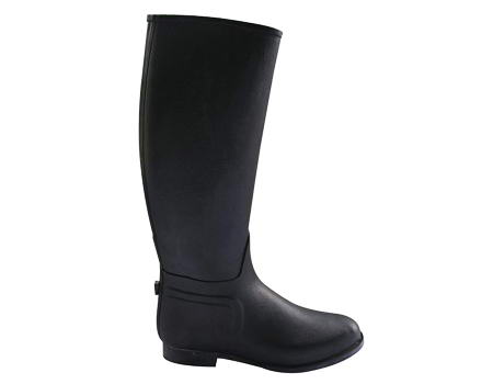 Tall, waterproof rubber English riding boots with a textured finish. Styled with the rider in mind compete with textured soles for better traction, a riding heel and spur rest. Great for lessons, barn chores or small backyard shows. A great quality, low maintenance boot at super price. Size 8 1/2-9 measures 16 3/4" from ground to back of boot at lowest spot, 13" calf, 10 3/4" foot measured toe to heel on sole & 3 1/2" at widest point of sole, & size 11 measures 18" from ground to back of boot at lowest spot, 14" calf, 10 3/4" foot measured toe to heel on sole & 3 3/4" at widest point of sole.