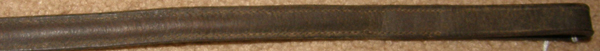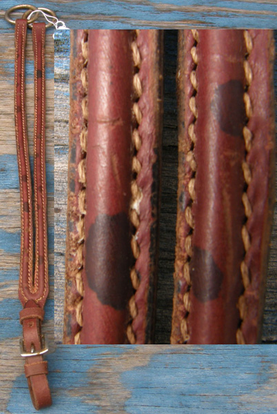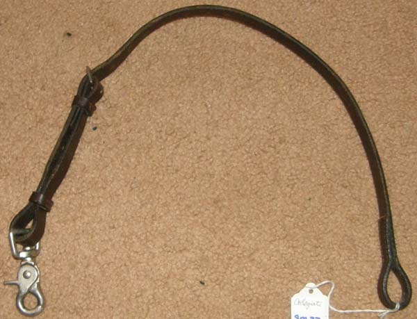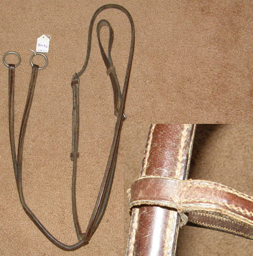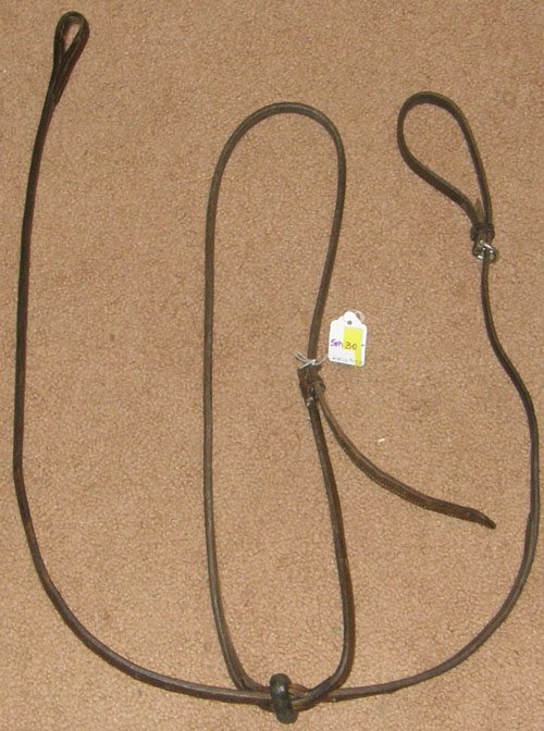 1” flat leather running martingale with scored & darkened edges & 1/2” flat leather neck strap. Measures 50” as adjusted now in 2nd shortest hole out of 10 holes. Leather is supple.