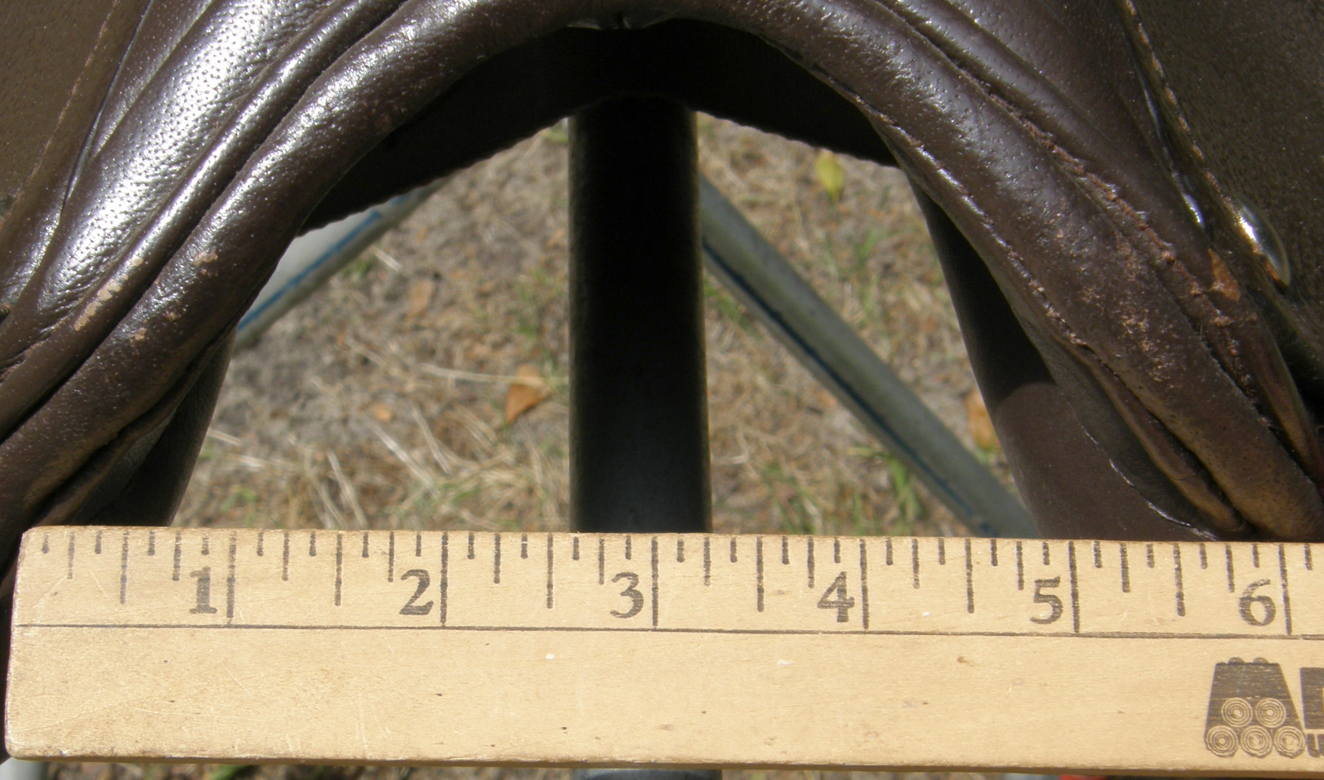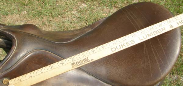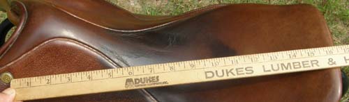 Longer flaps on this saddle fit riders with longer legs. Suede panels help keep legs in position with built up panels under saddle flaps. Rings for attaching breast plate. Deeper seat for keeping rider in saddle. New with tag but whatever is inside padded suede flaps has gone crunchy.