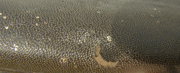 Older dressage saddle, style believed to be the Prix St. George model. It has smooth leather foam filled front panels, & front blocks. Seat has some stripe marks that look like scratches but are surface only & may possible buff out. Stitching on front blocks to padding is coming undone on both sides so is loose, small tear in padding at top of left side(see pix) & there is a large scuff gouge to front of left block(see pix). No billet guards & 1st billet on left side has some pulled holes near top(see pix). Still very usable & great as an entry level or starter saddle.