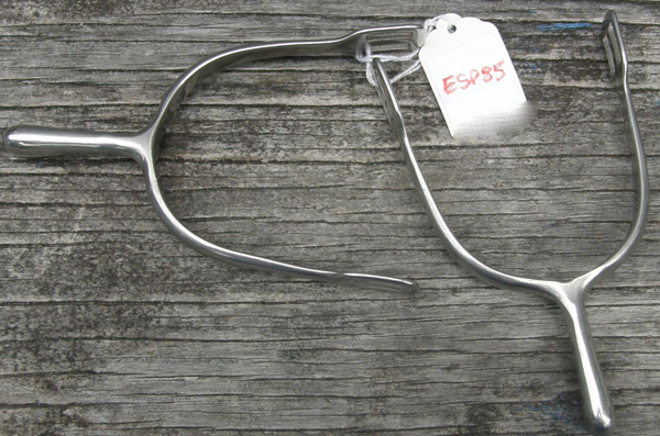 These Prince of Wales ladies spurs have a 3/4'' neck, blunt end, 5/16" band & rounded spur strap slots. Approx 3 1/4" opening. Stainless steel coated as it reacts mildly to magnet. Brand unknown.