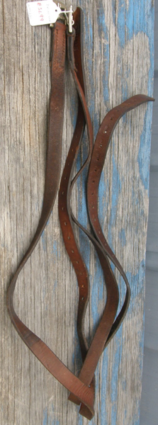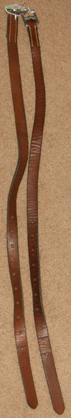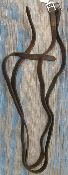 English stirrup leathers with smooth edges & 12 numbered holes plus a few more punched. 1" wide x 50" long. Brand unknown. Sturdy yet supple.