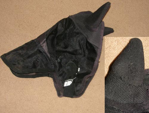 Mesh Fly Mask with Velcro & wide elastic at poll, breaks away in case horse gets caught or stuck, prevents accidents. 2 Velcro & elastic strap under throat.