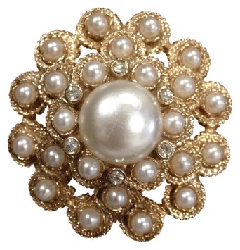 | Vintage Sarah Coventry Pearl Rhinestone Brooch Gold Pin Back Brooch MoonlightSarah Coventry