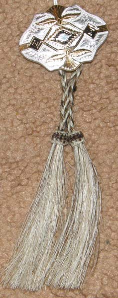 Price:  $20.00  Exc Used, see above | Montana Silversmiths Southwestern Scalloped Bolo Tie Brooch with Horse Hair Tassels Silver Gold Aztec Scarf Pin Braided Horsehair TasselsMontana Silversmiths