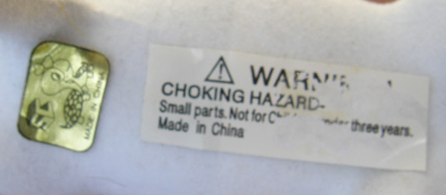 White flocked horse with black mane, tail, hooves & facial details, & glass eyes. Has original stickers on belly: a gold foil sticker of 2 fanciful turtles, SC & made in China, & a white warning label for choking hazard that also says made in China, but brand unknown. Assume the SC & turtles is the brand logo. Measures approx 5 1/8” tall x 6 1/2” long. This has been on display in the store, so has minor dust & dirt in flocking, a few tiny spots on hooves, but no rubs.