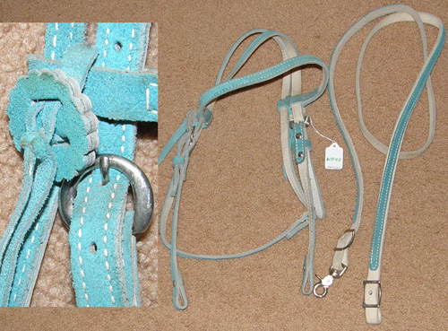 Roughout Western Bridle Gaming Reins Aqua Teal Rough Out Suede Western Headstall Roping Reins Cob/Horse