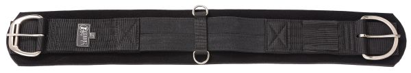 Easy to use double roller buckle makes tightening your girth quick and easy. Unlike conventional cinch buckles, the two rollers allow the latigo strap to roll freely giving the rider more leverage. Elastic at center for comfort and ease of breathing for the horse during heavy activity. Waffle weave durable PVC neoprene back. Strong nylon web top. Heavy flat stainless steel buckle on off side with heavy stainless steel double roller buckle for easy tightening on near side. Similar to the Weaver Smart Cinch.