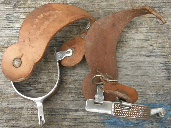 Spur features 3" boot opening. Comes with a pair of used leather spur straps that are soft quality leather although dirty & stained from use.