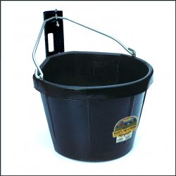 Flat back buckets have always been a favorite around the farm. The flat side fits more compactly against a wall or fence and makes hauling heavy loads of water or feed a lot easier. Buckets are molded from tough, polyethylene resin that is impact resistant, protects against warping and helps prevent stress cracks. All buckets feature heavy-duty steel eyelets and handles. Some minor scuffs & minor chew marks to rim, no holes.