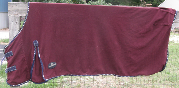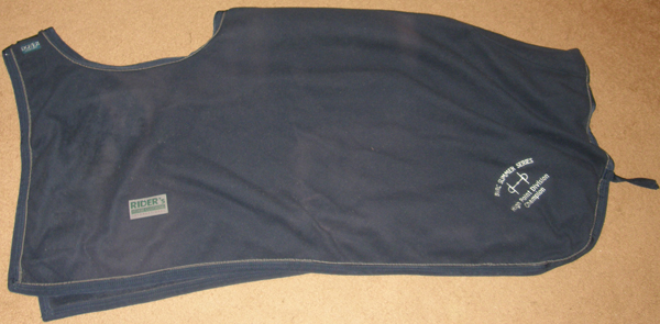 Soft fleece show cooler with front ties, head & tail straps. 90x80. Brand unknown.