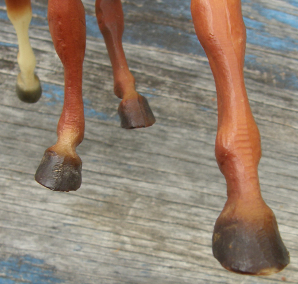 Red chestnut done on the Classic Keen mold as a portrait model of real horse Keen who participated in the Olympics the 1st year of release. Made by Breyer 1980-1993 only. Variation with very high right hind stocking. Eartips rubs, a few tiny faint rubs & right front foot splays out but stands well. Easy to fix foot with hot water bath.