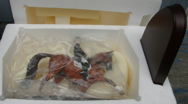 Presented in fine bisque porcelain, this is a portrait model of famous Standardbred racehorse Hambletonian. Made by Breyer in 2000 only with 1,000 models made. Comes new in box lined with styrofoam, but we will only ship this box with INSURANCE. It is heavy due to porcelain & extra packaging. Only opened to inspect otherwise new in box with its certificate of authenticity in sealed envelope. Box shows some wear.
