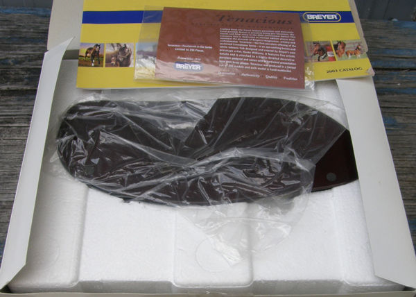 Lovely dark seal bay Thoroughbred horse. Made by Breyer in 2002 only as a Limited Edition of 2,500 pieces made. Comes new in box lined with styrofoam, but we will only ship this box with INSURANCE. It is heavy due to porcelain & extra packaging.