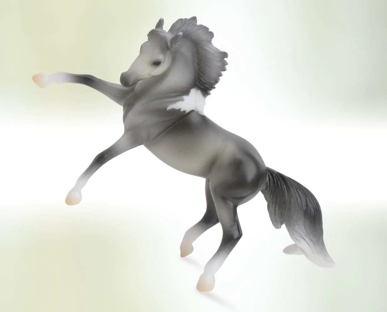 Grey pinto done on the Rearing Andalusian mold. Made by Breyer as part of a 6 horse breed set in 2023-2025.