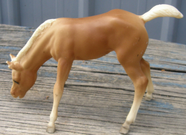 Palomino done on the Grazing Foal "Bows” mold. Produced by Breyer 1964-1981 only.