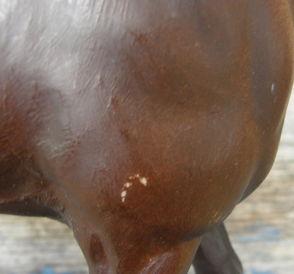 2 small white marks or scratches on top of left hip/back & left hind leg is underslung a bit much but he stands well. No box.