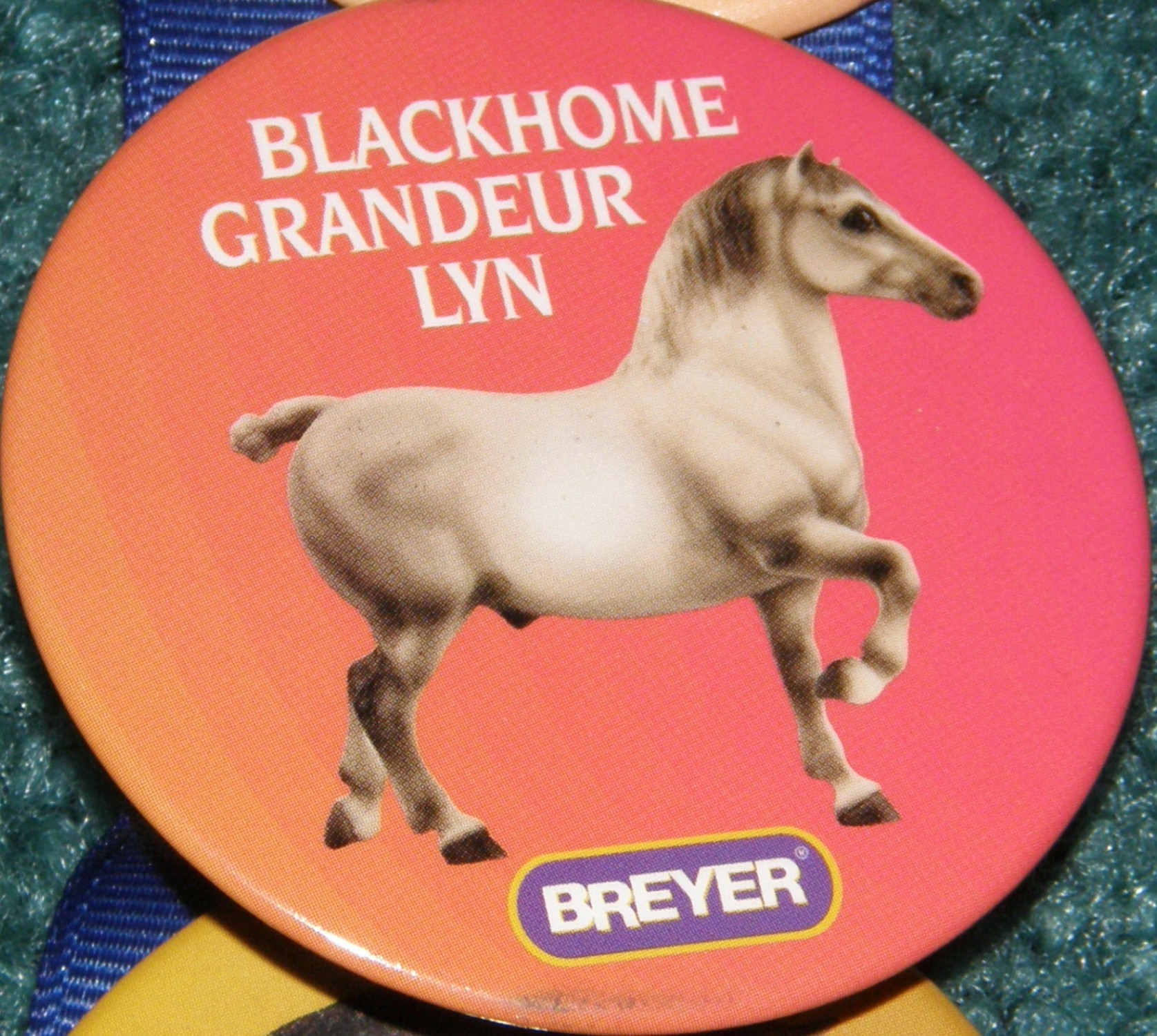 Glossy shaded grey done on the Belgian Drafter mold as a portrait model of famous Percheron stallion of the same name. Lyn, a breeding stallion at 17.3 hands and 1,900 pounds, displays a longer, finer neck than his near ancestors, but shares the distinctive grey coat coloring, the minimal feathering of the lower legs, and an easy disposition. His get are sought after as members of 6 and 8 horse show hitches as well as for breeding programs across the U.S. Made by Breyer 2004 only as an unannounced Special Run with only 500 models made in Glossy.