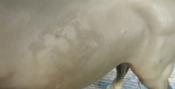Leopard Appaloosa done on the Spanish walking Hanoverian mold after the real dressage horse of the same name, famous for being able to do the Spanish Walk, & who appeared at Linda McCartney’s funeral(Beatle singer Paul’s wife). Made by Breyer 2000-2003 only.