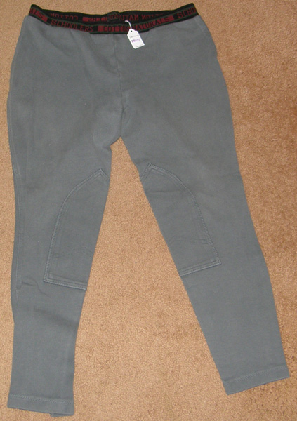 On Course Cotton Naturals Schoolers Pull On Knee Patch English Breeches Ladies XL 31 Slate Grey