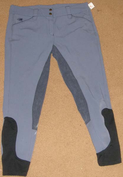 TuffRider Ribb Knee Patch Breeches Ribbed English Breeches Riding Pants Ladies 32 Smoke Blue/Grey