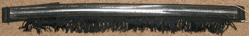 1” wide nylon with vinyl overlay that has a 1/4" silver center stripe for an almost patent leather look, & fringe 1" long the entire length. Great for gaited breeds or adding bling to your English or western bridle. 16” long with velcro on both ends for easy attachment to your bridle. Minor crack marks to silver stripe that are not there when browband is bent, only seen when laying flat, & minor dust from storage. Brand unknown.