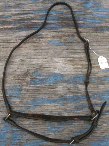 Finest English leather English caveson with 5/8" wide rounded raised noseband. Rubbed & darkened edges. Noseband measures 24" at smallest & 28" at largest adjustment.