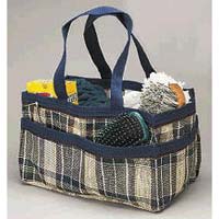 A handy way to carry your grooming and health supplies. The interior includes elastic straps to hold containers. The 8 pockets on all four outer sides can hold everything from hoof picks and mane combs, to wormers and medication. The mesh allows for easy cleaning and years of use. Fashionable tote for your grooming supplies. 12” x 7” x 6". Brushes and accessories not included.