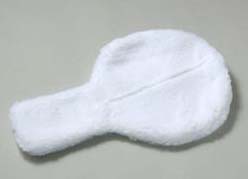 Fleece cover with velcro closure, designed to fit the keyhole seat riser pad or lollipop pad. Flat measures approx 22" at longest point.