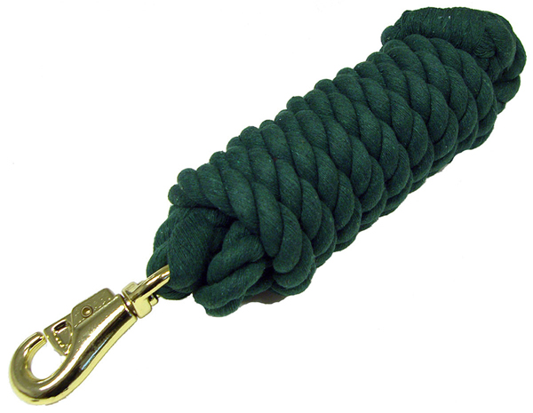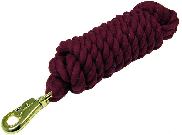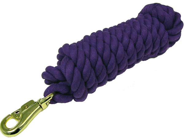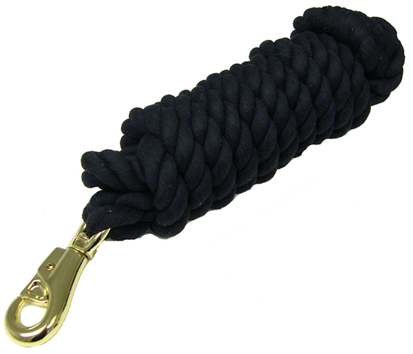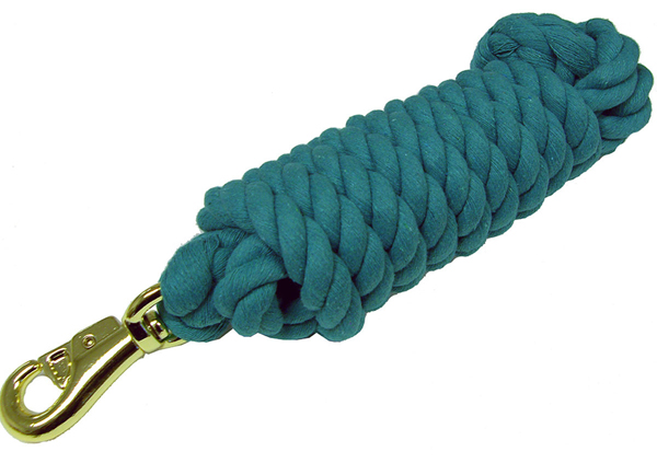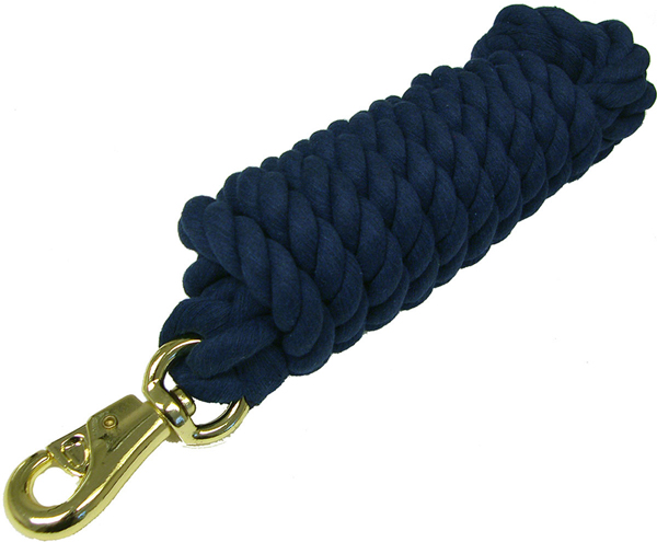 This is a great lead for around the barn or at shows. These are very sturdy yet soft on your hands. Cotton lead rope 3/4" x 10' long with brass plated bull snap. Quantites available listed after each color.