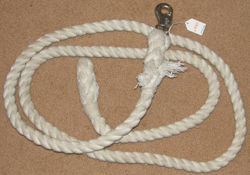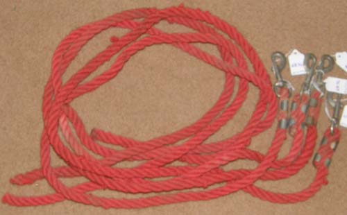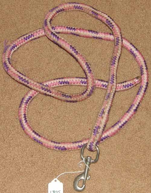 Braided Poly Rope that can be tied on to halter, either rope or nylon, without a snap that could break. Measures 5/8" x 7' long. Ends are heat sealed to prevent unraveling. Clean, no snags.