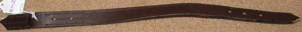 Leather replacement adjustable chin strap off a nylon halter so has a single brass buckle & 2 leather keepers. 7/8" wide single ply leather. Use to replace halter chin strap, or as a breastcollar tug. Measures 12 1/2" at longest adjustment & 10" at smallest. Leather cracks when tightly bent in some places. 1 available.