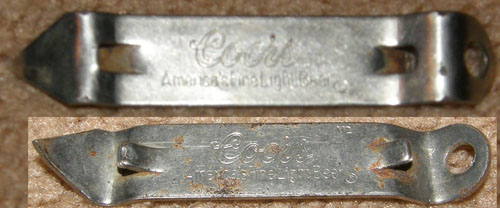 Possibly vintage metal can & bottle opener with Coors America's Finest Light Beer stamped on both sides. Minor rust on 1 side. Measures 3 3/8" long.