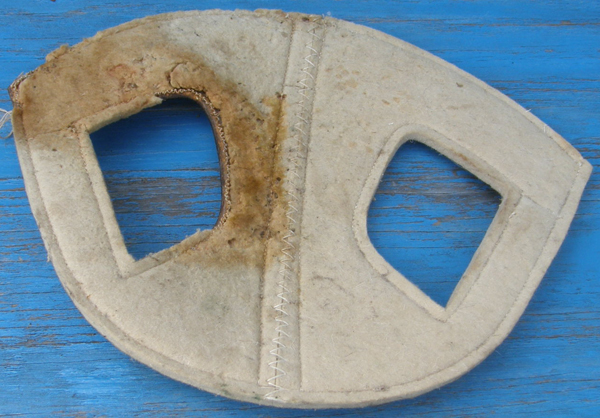horse helmet has a backing material made of felted fibers to provide comfort for
