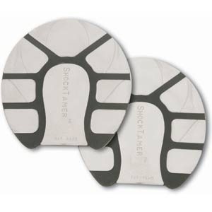 Designed like the sole of a jogging shoe, ShockTamer dual-density hoof pads are an effective aid in treating sore feet or relieving lameness & can serve as a prevenative measure against future hoof & leg problems. The softer gray polyurethane is the shock absorber while the harder black frame provides support & is the shock dissipater. Gives improved performance & less fatigue on performance horses. Fits up to a size 2. Measures 5 5/8" from side to side, 5 1/2" from toe to heel & 3/8" thick. Sold as a pair, 2 pair available.