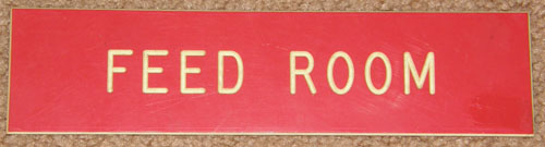 2” x 8” plastic sign engraved with FEED ROOM.