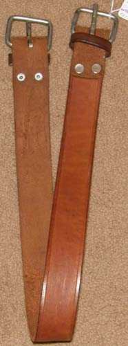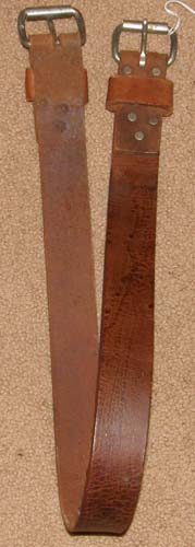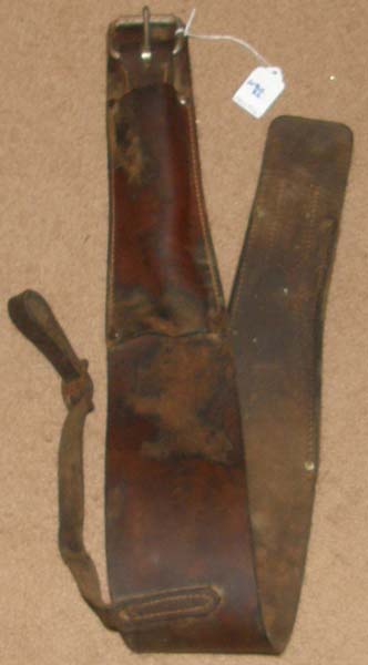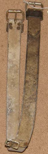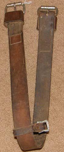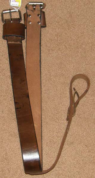 Leather rear cinch approx 1 1/2” wide x 38” long x 1/4" thick. Has roller buckles & billet keepers on both ends, & a buckle in center for attaching connector strap. Cinch only, no billet straps. Some rust on buckles, but rollers & buckles work well, corrosion on center buckle but it also works fine. Lots of discoloration & dirt, but still usable & great for that large bellied horse. Brand unknown.